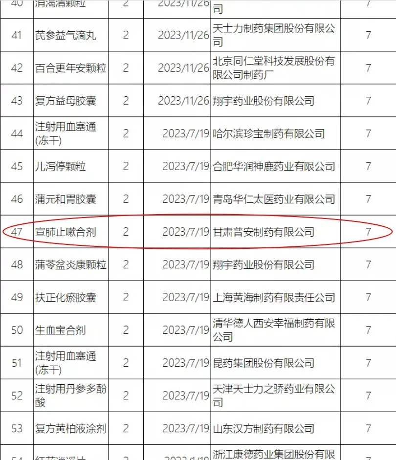 10月23日國家藥監局發布中藥保護品種的公告(延長保護期第3號)(2020年第114號)和 中藥保護品種公告(第5號)(2020年第115號)  。甘肅普安制藥股份有限公司的“宣肺止嗽合劑”,保護級別為2,保護期限為7年。