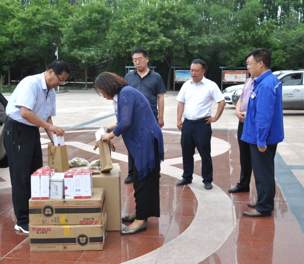 7月24日上午,涼州區委常委、黃羊工業園區黨工委書記、黃羊鎮黨委書記邵振泰,涼州區總工會主席李平元一行到甘肅普安制藥股份有限公司開展了“夏送清涼”活動,代表涼州區委區政府及黃羊工業園區管委會為我公司送來了綠茶、菊花和水杯等防暑降溫物資。