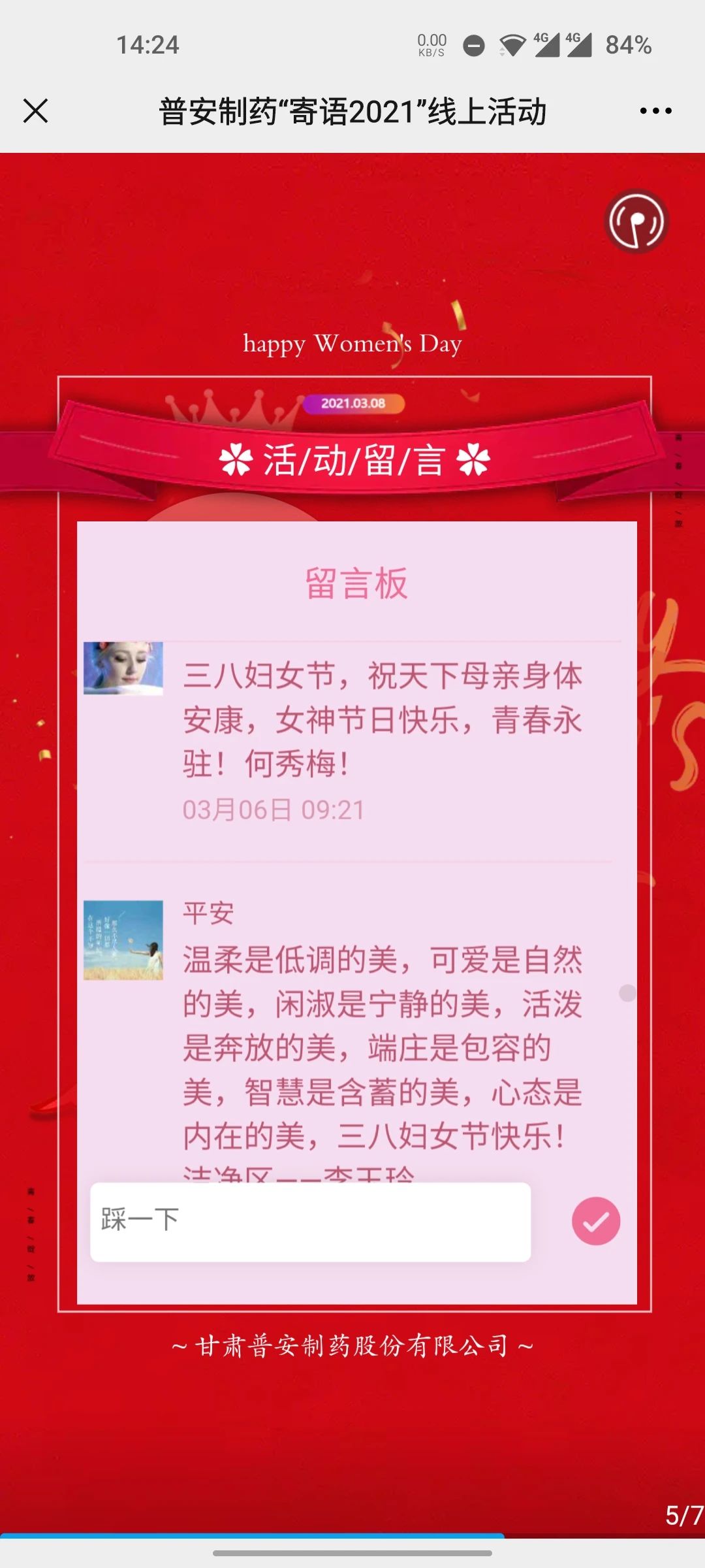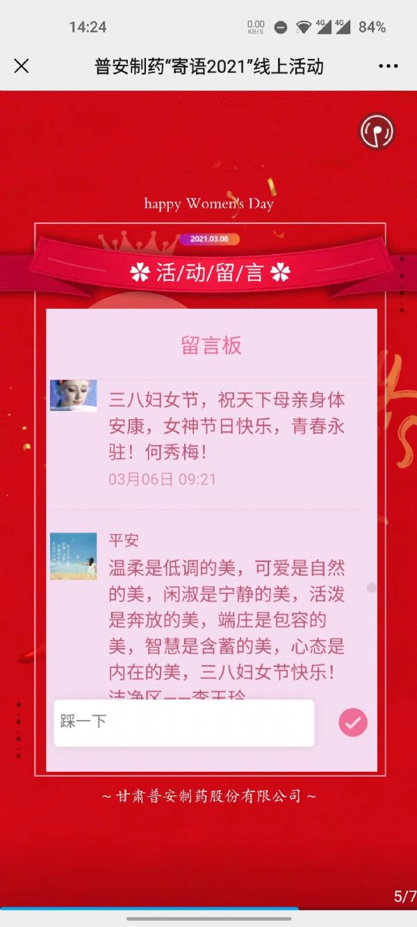 3月5日-3月8日開展了“寄語2021”線上寄語活動,廣大女職工紛紛留下了對2021年美好的祝愿,展現了女職工對家庭、企業、國家拳拳赤子之心。