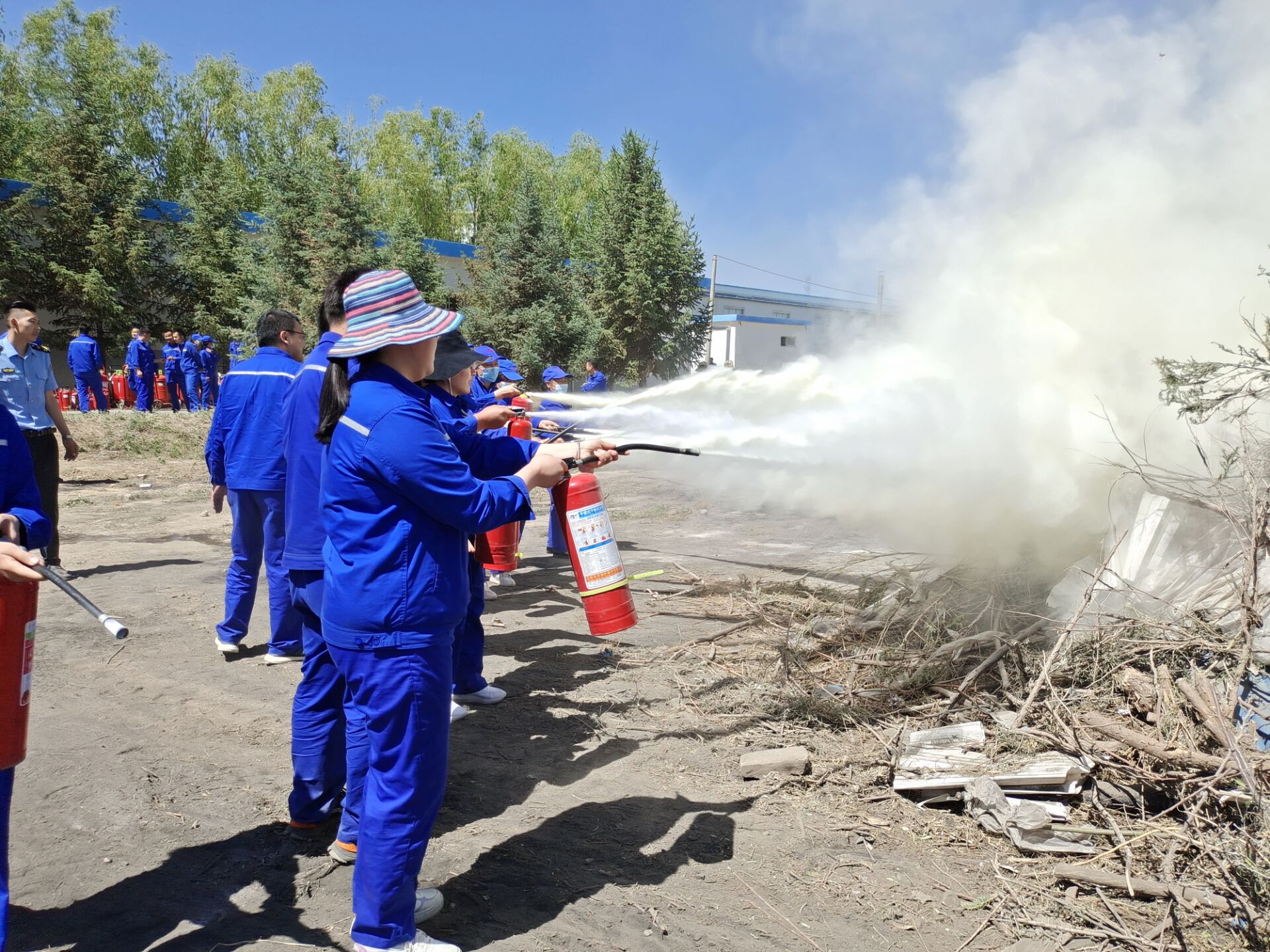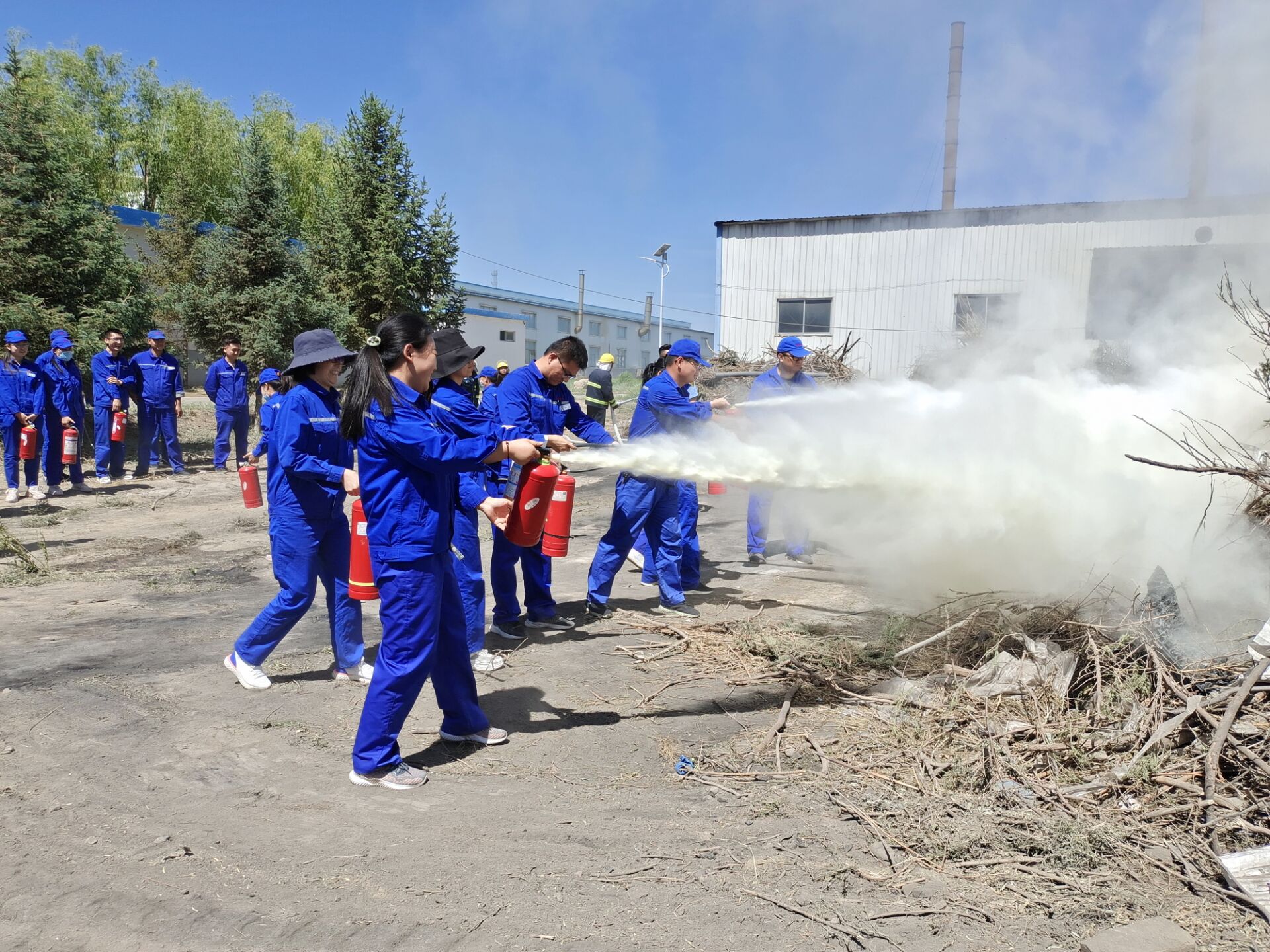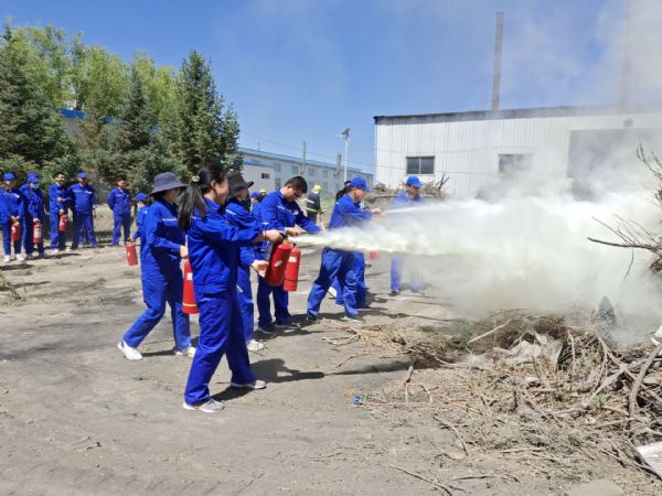 為增強安全消防員實戰本領,培訓結束后,參加培訓的人員在后廠區空曠地帶舉行了滅火演練。在直觀、真實的火場環境中,演練人員嚴肅認真、服從指揮,使用滅火器115具,消防水帶6條,嚴格按照教官培訓的滅火器操作步驟和使用方法進行實操滅火。