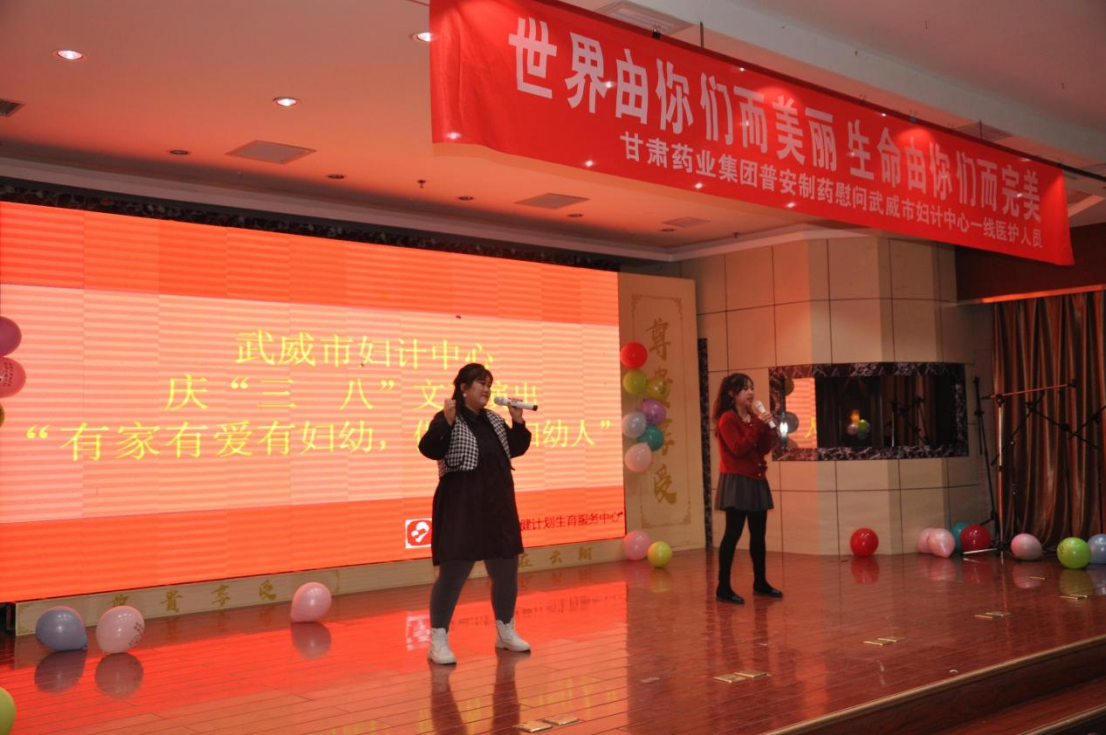 慰問當天,正值武威市婦計中心舉辦“有家有愛有婦幼,做精彩婦幼人”的文藝晚會。受到婦計中心邀請,公司代表出席活動并致辭,向默默奉獻在各個工作崗位的全體女職工們致以節日的問候和誠摯的祝福。活動現場氣氛高漲、晚會節目豐富多彩,引來陣陣掌聲與歡呼聲。在現場觀眾的強烈要求下,公司代表分別為現場的觀眾獻上了歌曲《再見,大別山》和《精忠報國》,將現場的氣氛推到了高潮。