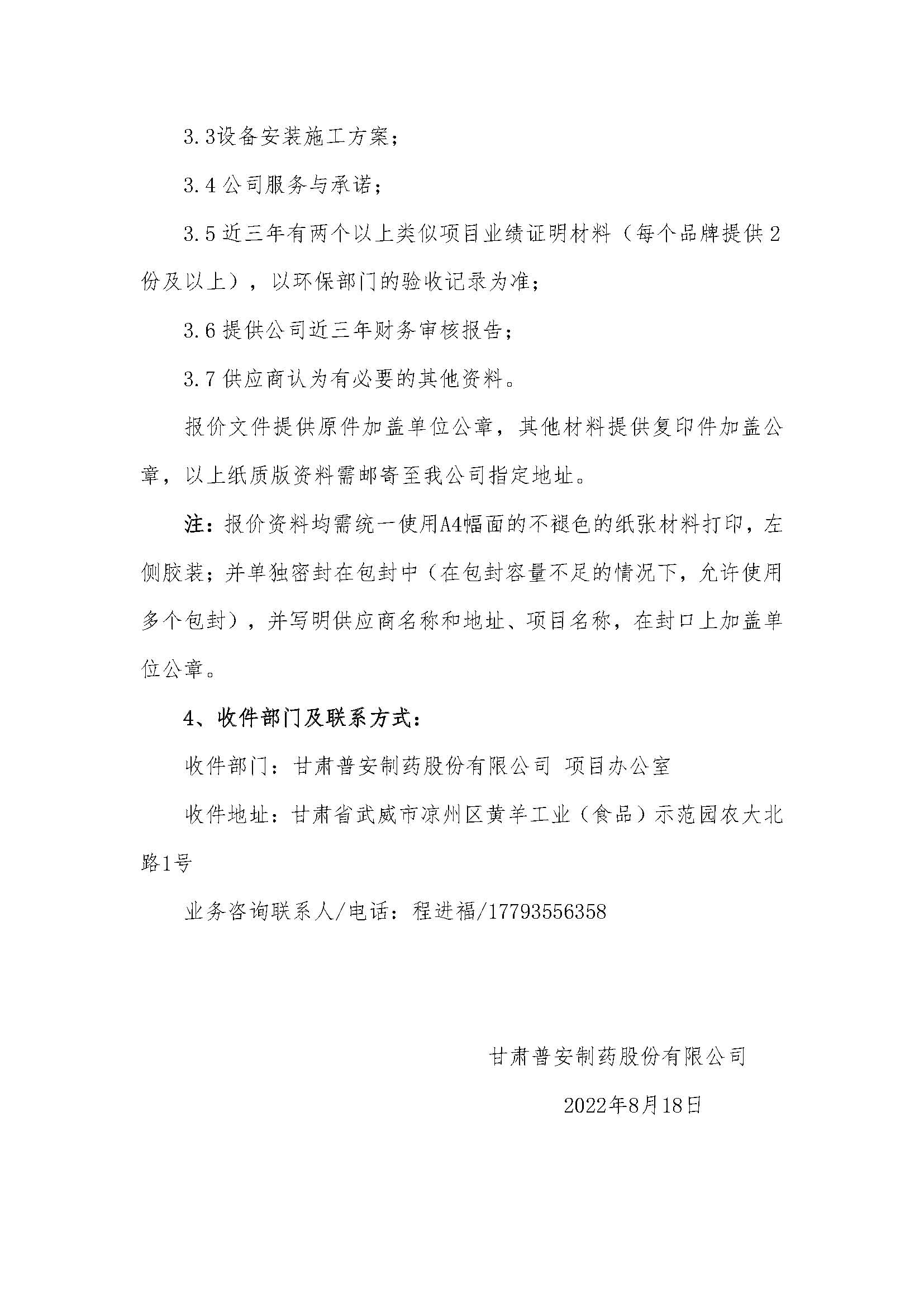 甘肅普安制藥股份有限公司15T/h鍋爐建設(shè)項(xiàng)目鍋爐設(shè)備在線煙氣監(jiān)測(cè)設(shè)備采購(gòu)報(bào)價(jià)邀請(qǐng)公告