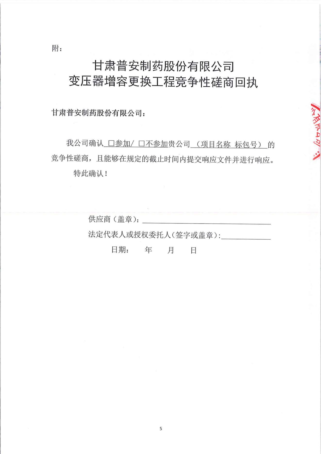 甘肅普安制藥股份有限公司變壓器增容更換工程競爭性磋商公告