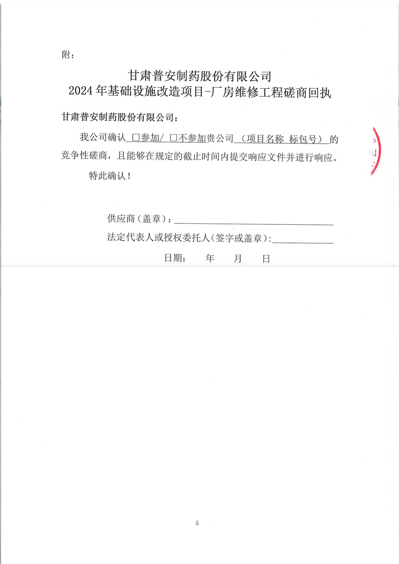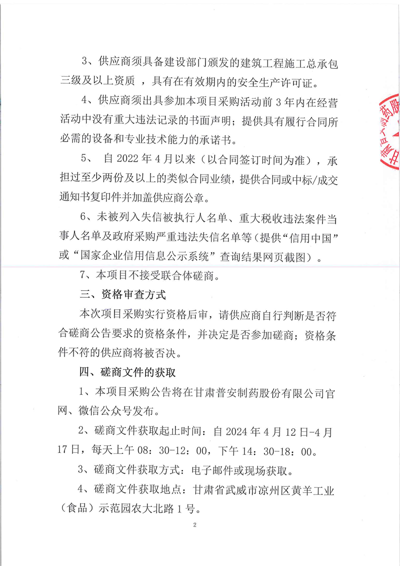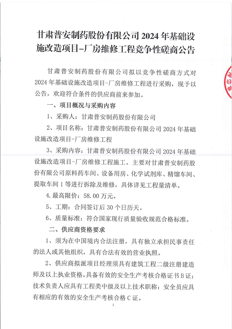 甘肅普安制藥股份有限公司2024年基礎(chǔ)設(shè)施改造項(xiàng)目-廠房維修工程競爭性磋商公告