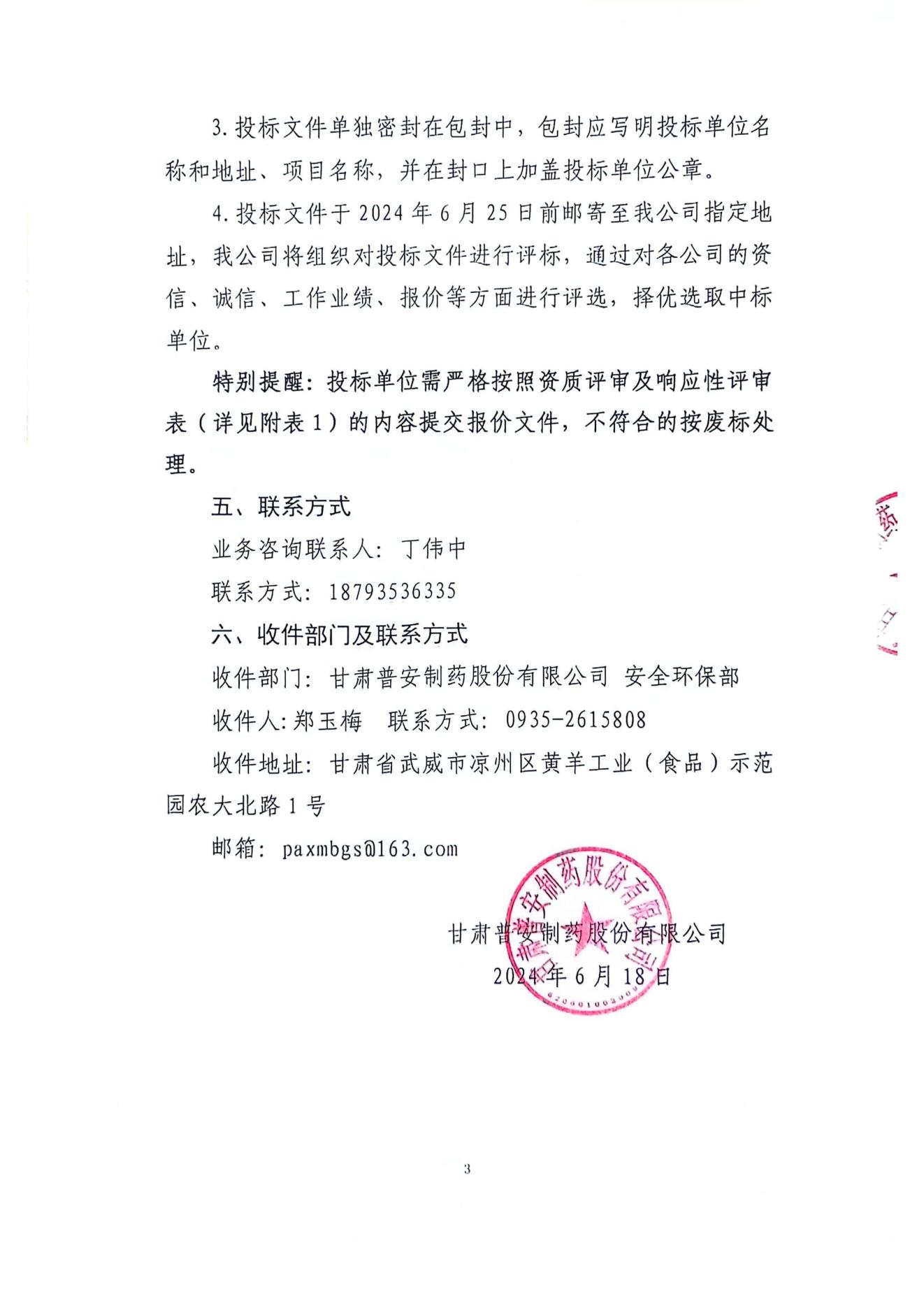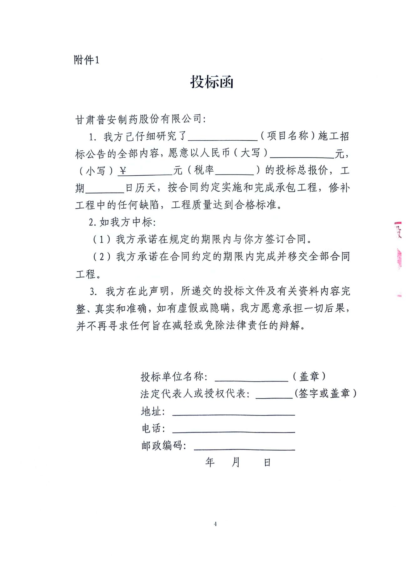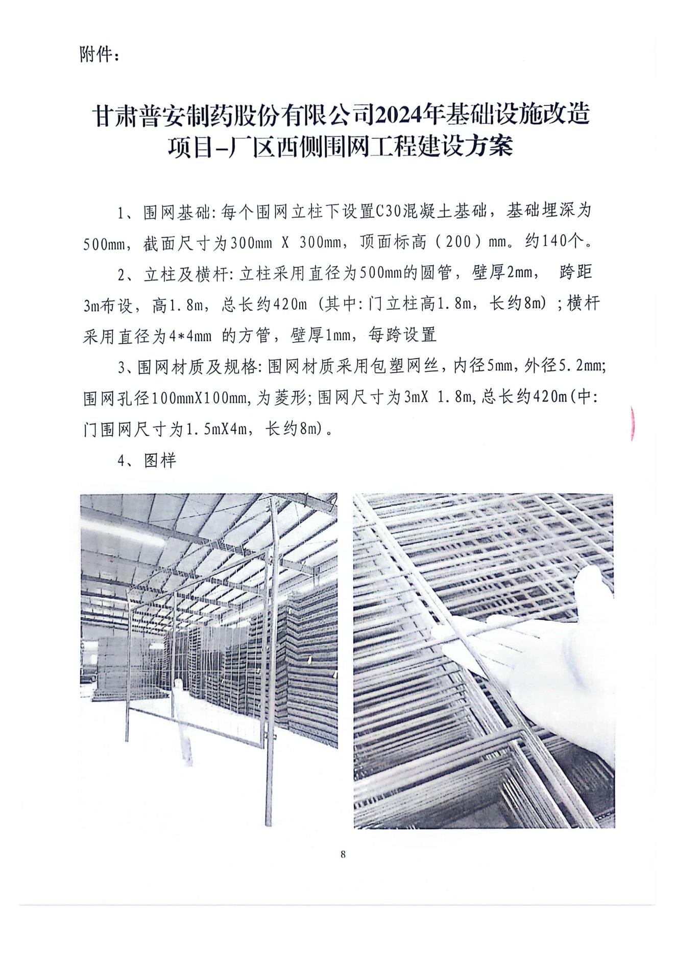 甘肅普安制藥股份有限公司2024年基礎設施改造項目-廠區西側圍網工程招標公告