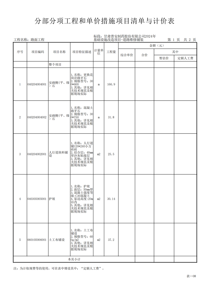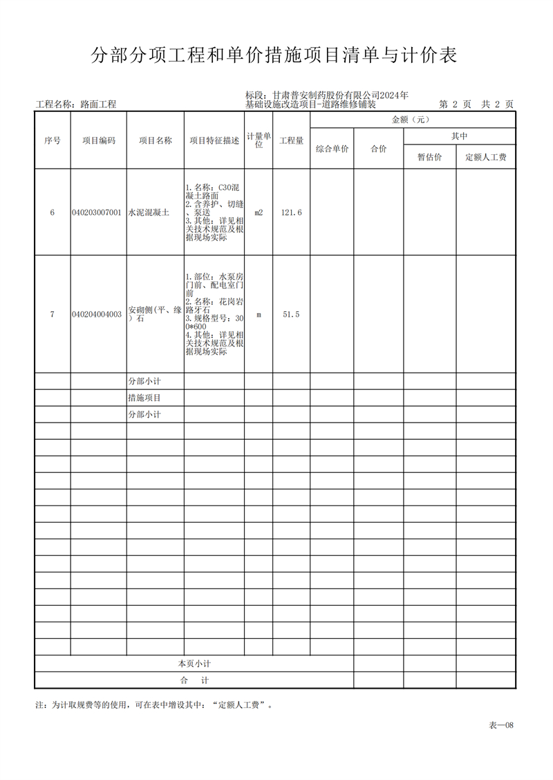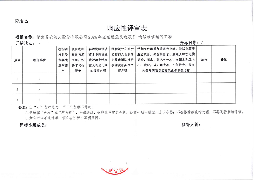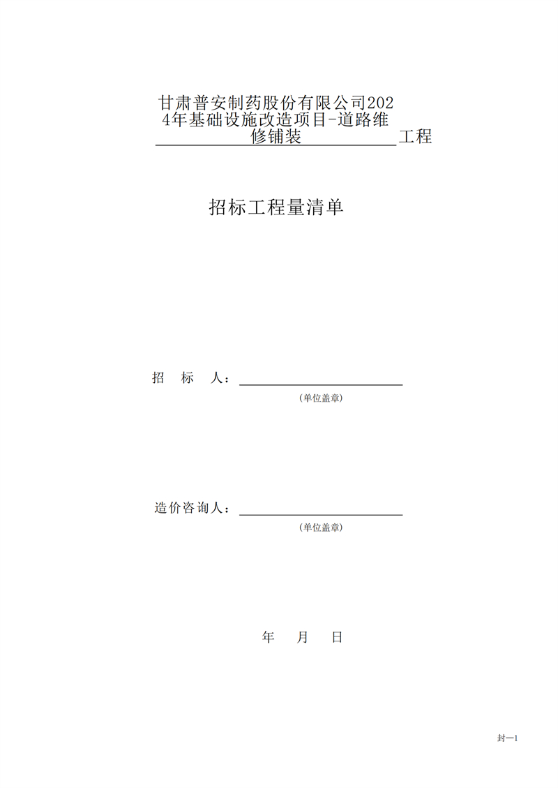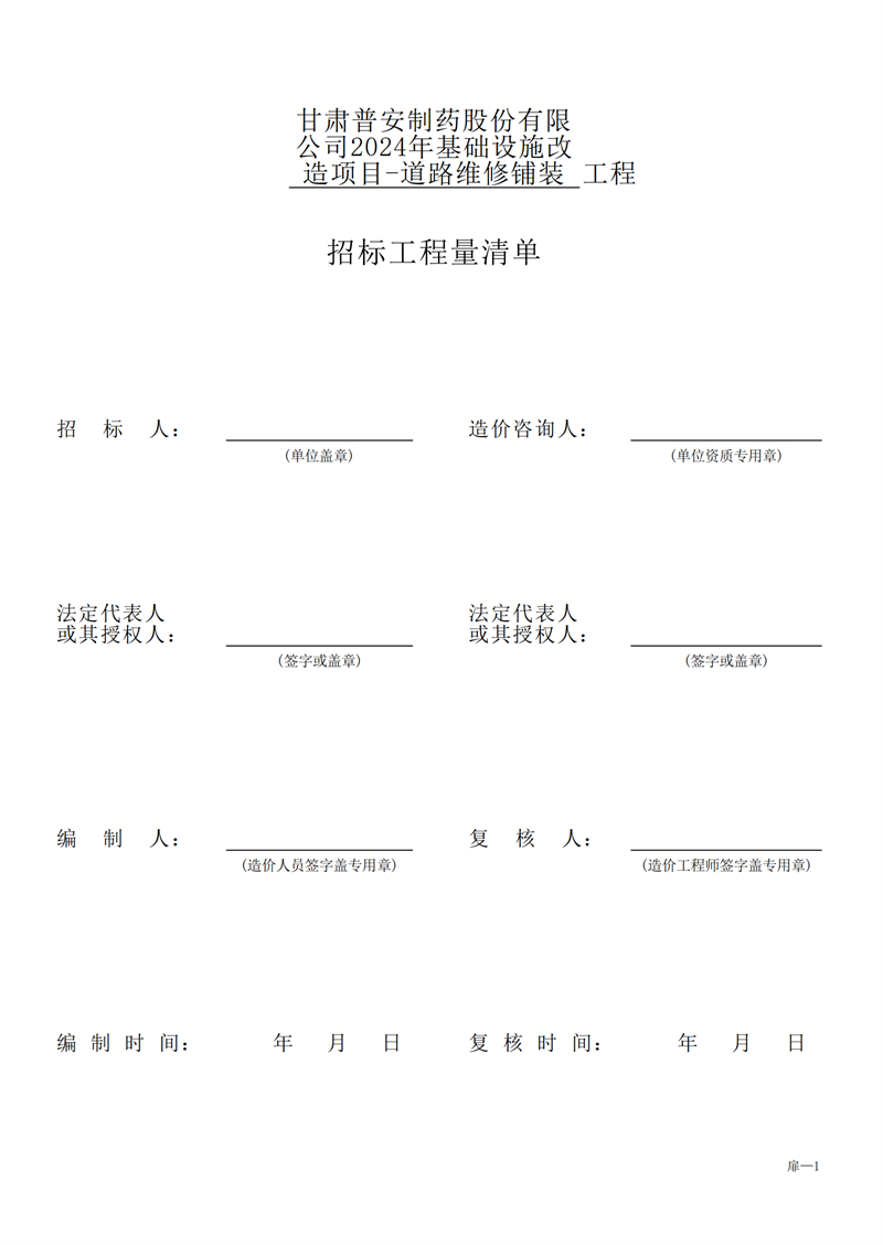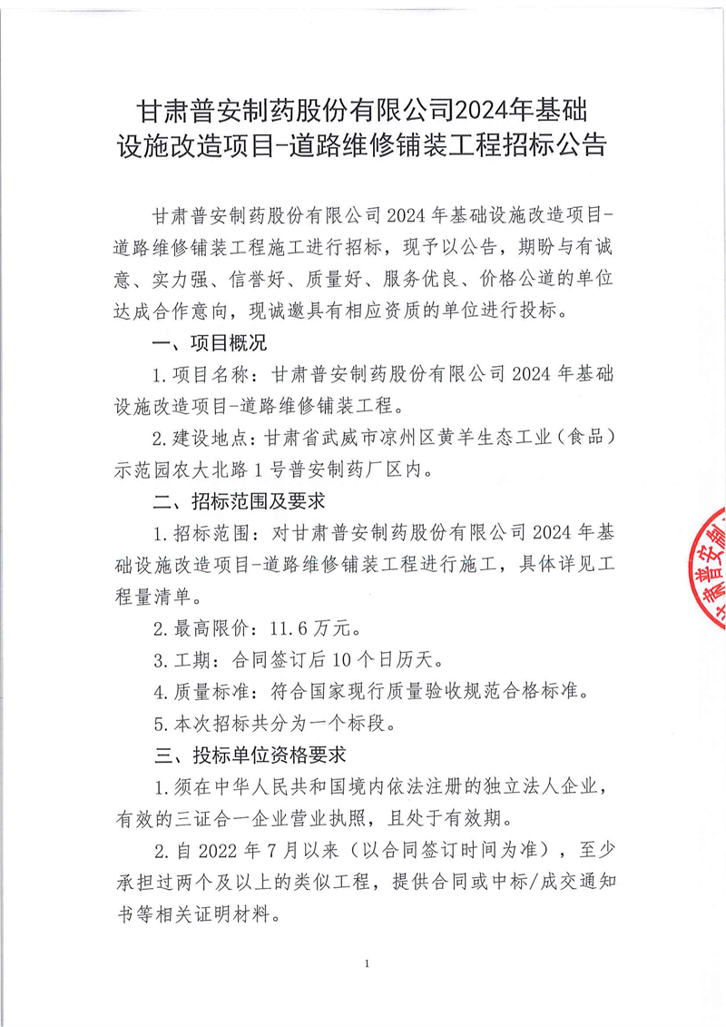 甘肅普安制藥股份有限公司2024年基礎(chǔ)設(shè)施改造項目-道路維修鋪裝工程招標(biāo)公告