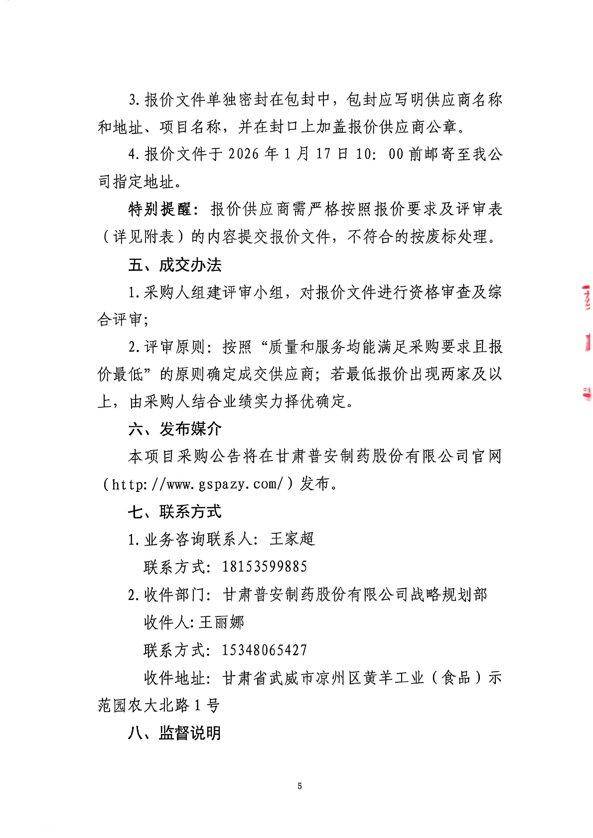 甘肅普安制藥股份有限公司年產5000萬盒(3億支)宣肺止嗽合劑等液體制劑生產線升級改造項目結構安全性鑒定服務詢價公告