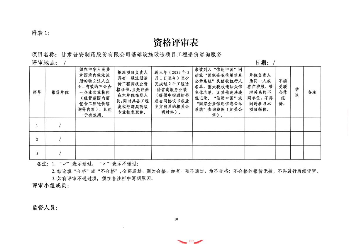 甘肅普安制藥股份有限公司基礎設施改造項目工程造價咨詢服務詢價公告