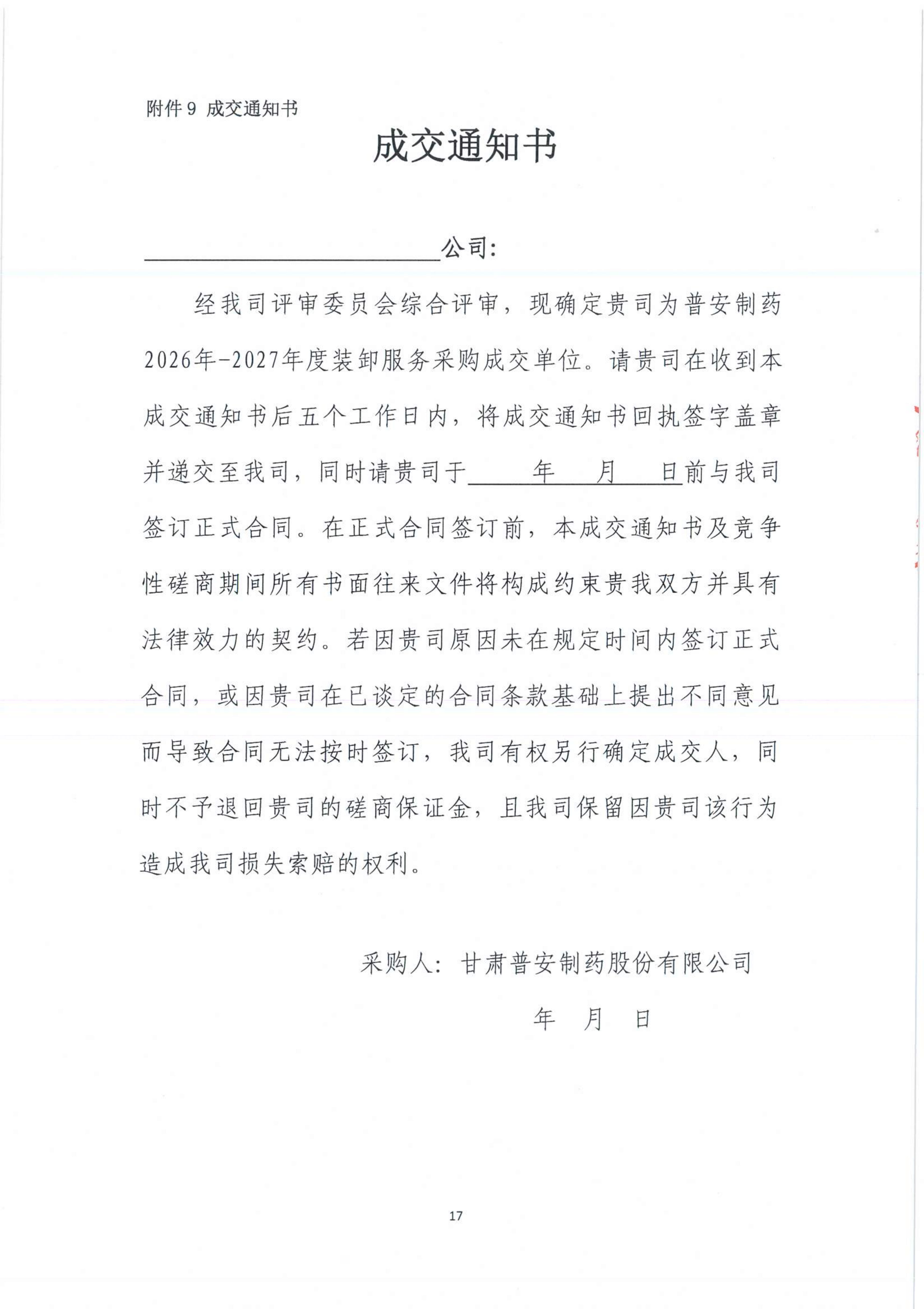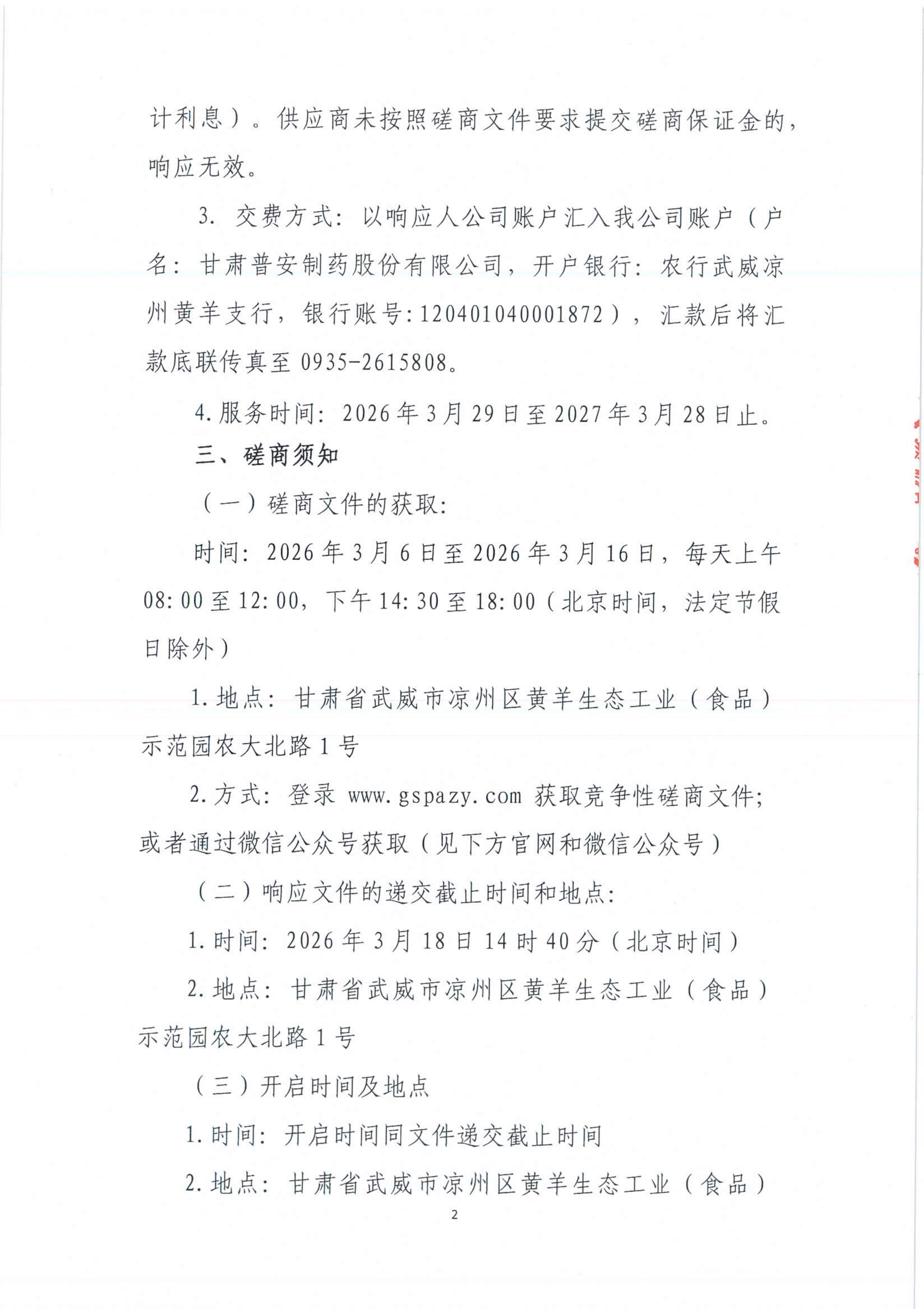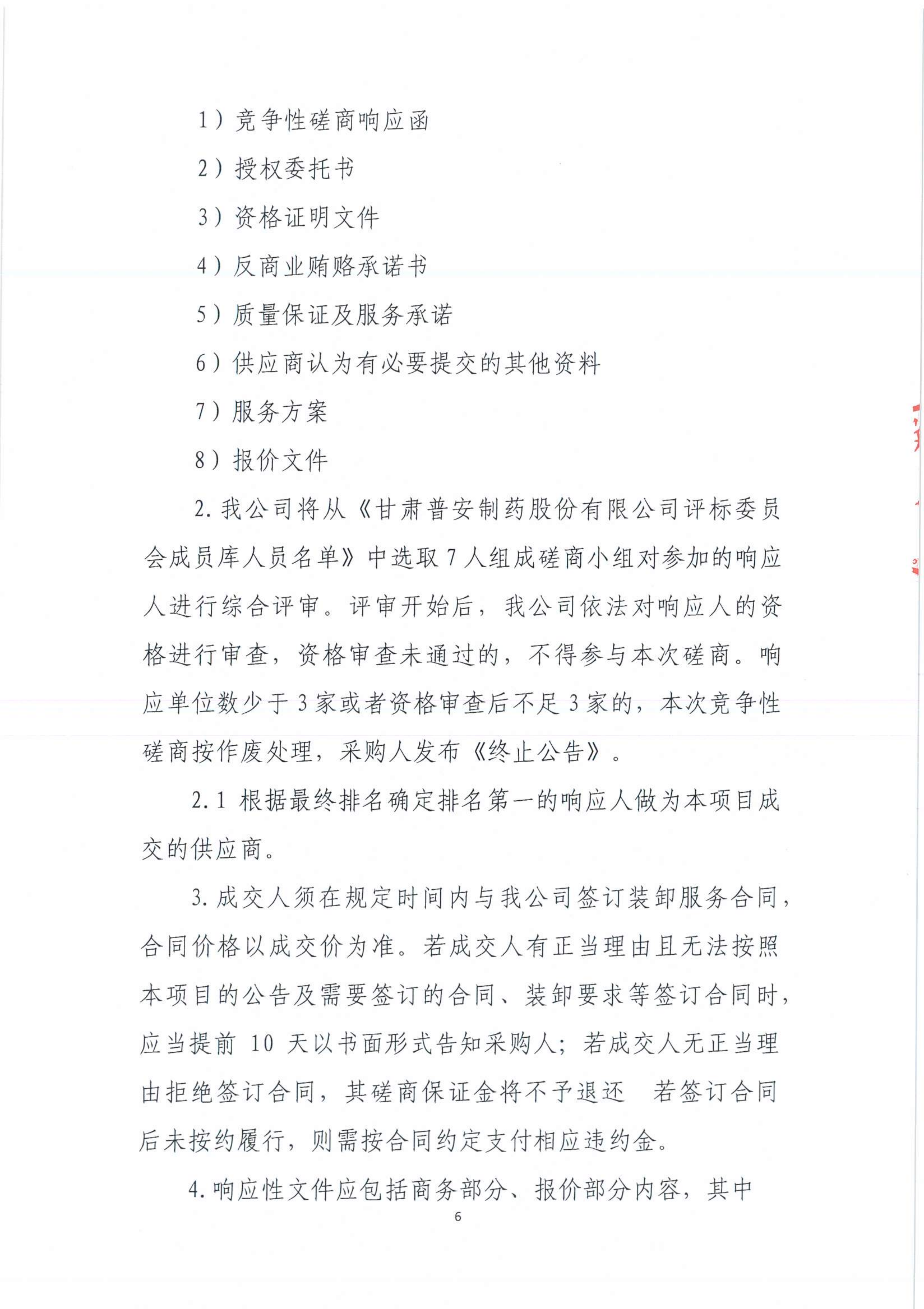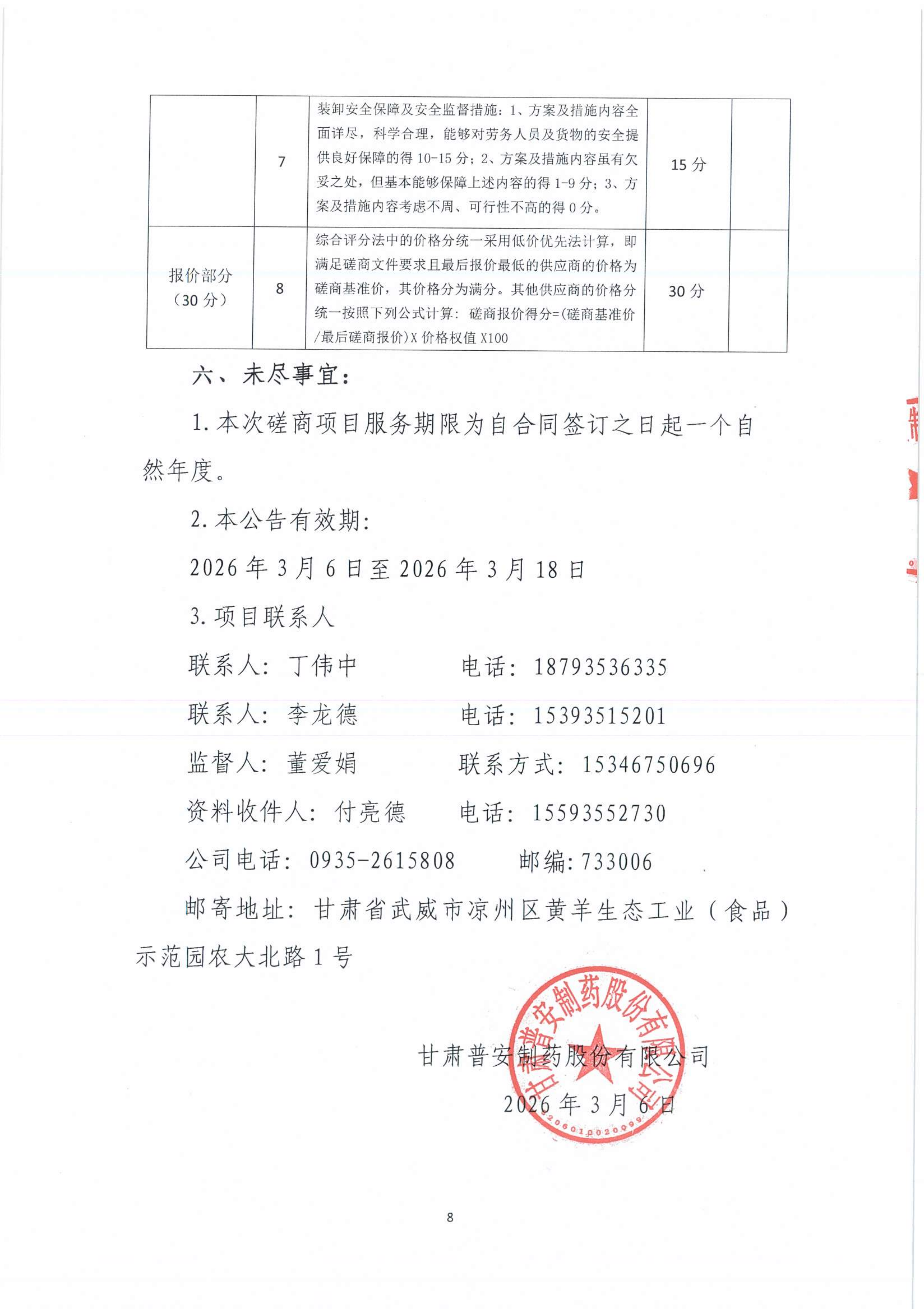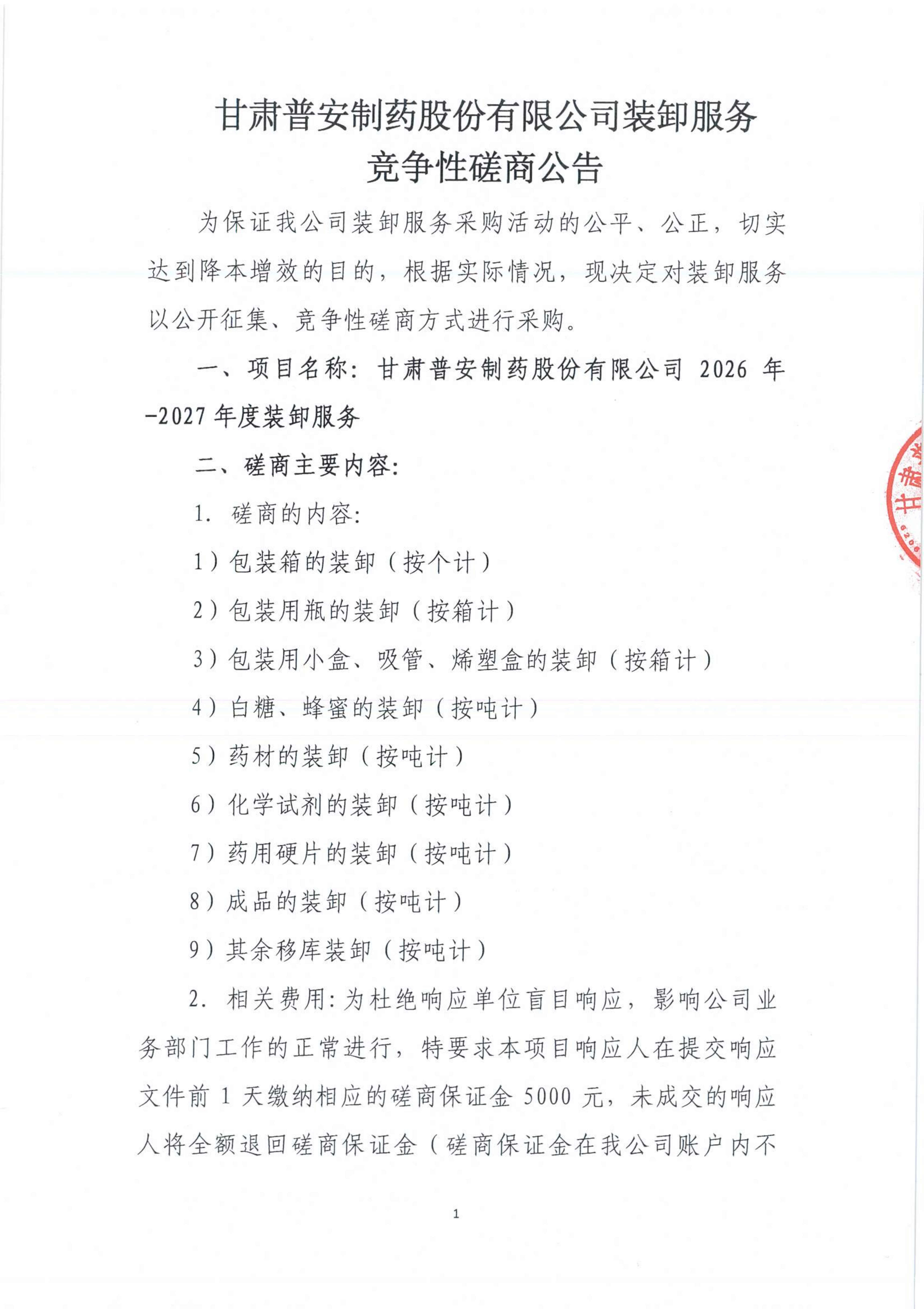 甘肅普安制藥股份有限公司裝卸服務競爭性磋商公告